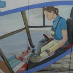 Descubrimiento (die Entdeckung), Serie (D1), Mischtechnik auf Sichtschutzplane, Marker, Tusche, Kohle, Acrylfarbe