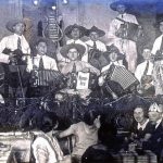 Descubrimiento (die Entdeckung), Serie (D1), Mischtechnik auf Sichtschutzplane, Marker, Tusche, Kohle, Acrylfarbe