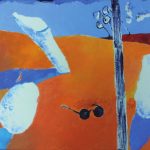 Descubrimiento (die Entdeckung), Serie (D1), Mischtechnik auf Sichtschutzplane, Marker, Tusche, Kohle, Acrylfarbe