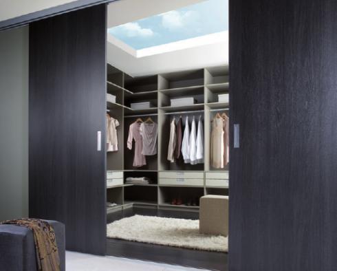 Aus Schränken werden bei ihr Räume und diese Räume werden erlebbar. Raumhohe Schiebetüren, die lautlos und leicht zur Seite gleiten, schaffen auch in Schrägen hervorragend Platz und individuell angepasste Regal- und Schubladensysteme sorgen dahinter für Ordnung. Um einen nahtlosen Übergang zwischen verschiedenen Bodenbelägen herzustellen und Schwellen oder Stolperfallen zu vermeiden, kann beispielsweise auch die Bodenschiene eingelassen werden.